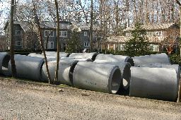 Day 1 - Our Sandbox Toys are Bigger than YoursWell, the fun begins. We had about 1/3 of the pipe delivered today, and some exploratory digging for water lines and such. At the end of the day we have two of these tracked excavators in the yard and one large front loader. What have you got in your yard? Each of these sections weighs about 6 tons. There will be about 50 of them. Made in Roanoke VA and trucked here. Sharon can almost stand up in these. I will take a snap of her in one tomorrow. I took this next one before all of the first 1/3 of the pipe had turned up. Tomorrow they start ripping things up. |